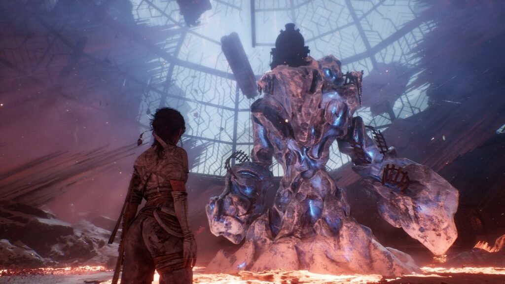 The final guardian of Frozen Hearts, Gargant, is a monstrous Nevron capable of switching between Fire and Ice stances. Timing and awareness are everything here. In its Fire stance, it’s weak to Ice; in its Ice stance, it’s weak to Fire. But don’t equip weapons of those elements directly, Gargant absorbs them when in the same stance.